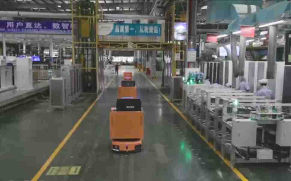 为车载冰箱物流配送打造的智能解决方案,,,包含产中物流通过潜伏举升AMR搬运至线边,,产后成品物流智能仓储,,,流程包含产中物流智能齐套入库,,线边安灯叫料AMR智能配送至线边,,,成品入库、、、出库,,通过无人堆高车机器人,,智能仓储管理替代人工作业管理,,实现更高存储、、、更高效率、、、更具柔性化的解决方案。。